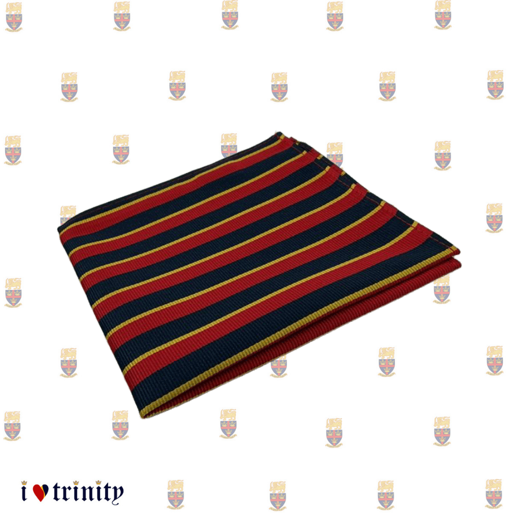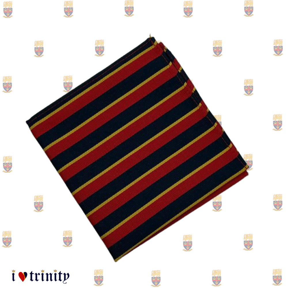 Enhance your formal look with this Trinity College Kandy–inspired pocket square, featuring classic red, gold, and blue stripes for a refined and timeless style.