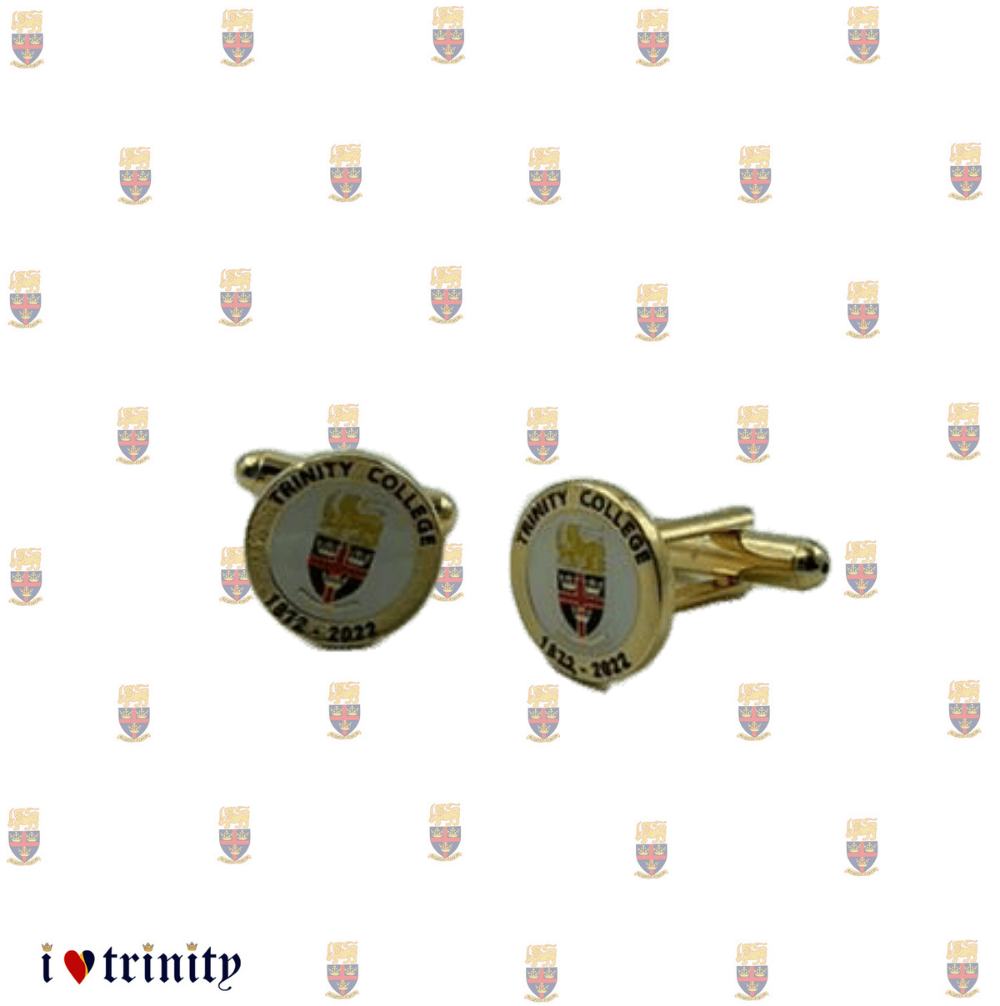 White and gold–colored cufflinks featuring the Trinity College crest. Designed to be both decorative and functional, these cufflinks add a refined touch to any formal outfit while ensuring a secure and polished look. Paired with elegant gold accents, they are perfect for official events, ceremonies, and special occasions. An excellent choice for all Trinitians who wish to elevate their formal style with a classic and distinguished accessory.